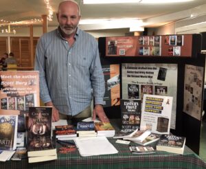 The real estate agents are right: location, location, location. I got a perfect spot: under a tree for shade, across the main path from two other local authors. It was a virtual Authors’ Row. Thanks to John W. Partington and Allan McCarville, who after presenting their own books to shoppers, directed them across the path to my humble table.